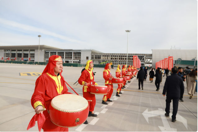 2024年11月29日上午10:40,随着江西航空RY6625航班的平稳降落,嘉峪关酒泉机场迎来了年旅客吞吐量突破100万人次的重要历史时刻!这“100万”数字的背后,是践行“人民航空为人民”的生动实践,彰显着甘肃省民航机场集团的坚强领导,凝聚着酒泉和嘉峪关两市市委、市政府的鼎力支持,更凝结着嘉峪关酒泉机场民航人九十余载艰苦奋斗、开拓进取的汗水。雄关空港就此踏入百万级机场行列、正式掀开百万新篇章,以奋进姿态乘风而上,为甘肃民航高质量发展增添强劲动力。上午10:40,“嘉峪关酒泉机场年旅客吞吐量突破100万庆祝活动”接机仪式开始,在激昂有力的威风锣鼓表演中,嘉峪关酒泉机场党委书记、总经理何海峰向第100万名旅客送上精美的花束和精美礼品并进行合影,憨态可掬的“熊大”“熊二”为下机旅客发放各种小礼物。在“嘉峪关酒泉机场年旅客吞吐量突破100万庆祝活动”现场,设置了妙趣横生的抽奖环节,为现场嘉宾准备了免费机票、航空公司精美机模、保温杯、玩偶等多种礼品。抽奖活动结束后,众多舞蹈演员以轻盈灵动的身姿表演了礼仪舞、手势舞、快板等节目,展现了嘉峪关酒泉机场职工昂扬向上、意气风发的精神风貌。