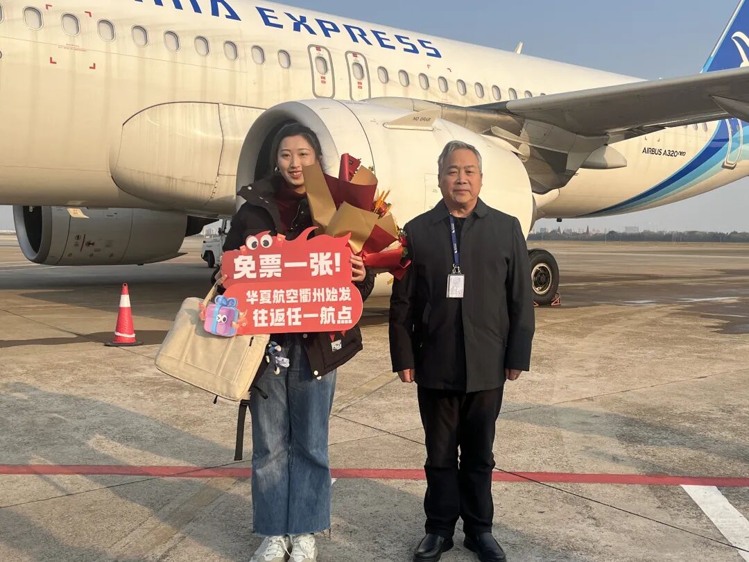 12月18日下午,乘坐华夏航空G54683航班从重庆到衢州的姚女士,幸运地成为衢州机场2024年的第100万名旅客,衢州机场为姚女士赠送了纪念品和免费机票。