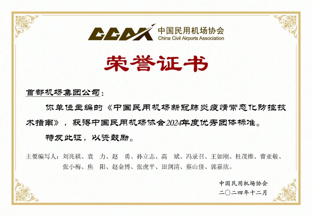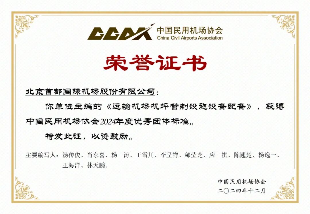 中国民用机场协会按照《中国民用机场协会评选优秀团体标准管理办法(试行)》,组织开展优秀团体标准评选工作,以标准化为新质生产力助力民用机场行业高质量发展。此次评选,在已发布实施满2年的标准中,从创新性、实用性、使用性和影响力等方面进行综合评分。经标委会办公室提名、标准化技术委员会投票、公示、理事长办公会审议批准,最终推选出 9项优秀团体标准(排名不分先后)。此次优秀团体标准的评选贯彻落实《关于加强民航标准化工作的指导意见》(民航发〔2020〕19号)和《关于促进全国性民航行业协会服务高质量发展的通知》(民航综法函〔2023〕110号)的重要精神,是探索完善团体标准高质量发展常态化、长效化的落实举措。加快构建适应民用机场高质量发展的标准体系,更好发挥标准化在加快交通强国民航篇、构建综合交通枢纽中的引领、支撑、强基作用。